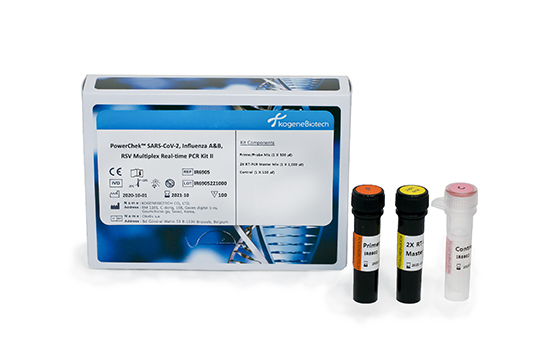 PowerChek™ SARS-CoV-2, Influenza A&B, RSV Multiplex Real-time PCR Kit II provides the fast and accurate testing solution for of nucleic acid from SARS-CoV-2 that causes Coronavirus Disease 2019 (COVID-19), Influenza A virus, Influenza B virus, and respiratory syncytial virus (RSV) specifically.