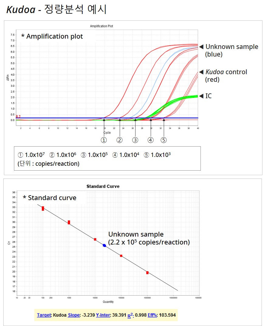 본 제품은 향상된 민감도와 특이도를 구현할 수 있도록 개발된 코젠바이오텍의 프라이머/프로브 기술이 적용되어 Kudoa 특이 유전자를 보다 신속하고 정확하게 검출할 수 있어 효율적이며 경제적입니다.