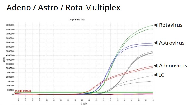 본 제품군은 노로바이러스 GI, 노로바이러스 GII, 로타바이러스, 아스트로바이러스, 아데노바이러스, 사포바이러스, 엔테로바이러스 특이 유전자를 검출할 수 있는 Real-time PCR 키트입니다.