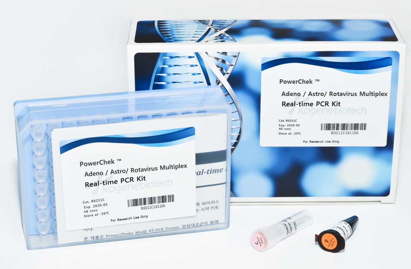 | R0211C | PowerChek™ Adeno / Astro/ Rotavirus Multiplex Real-time PCR Kit | 48 (8 strip X 6) | 별도문의 | |